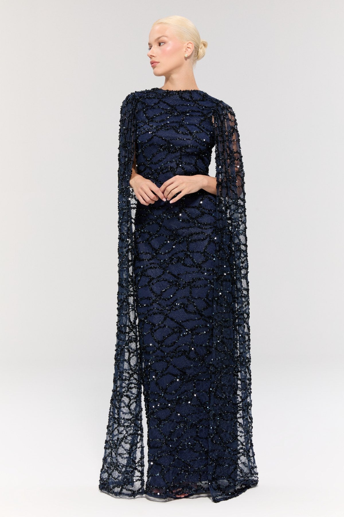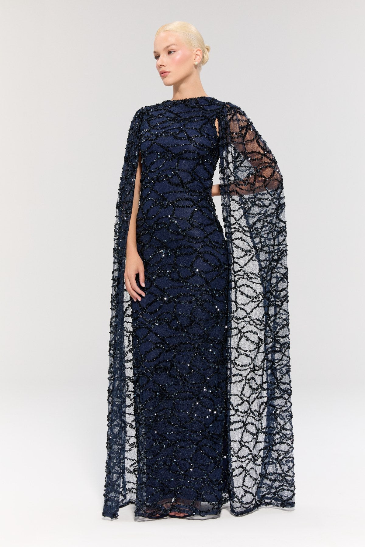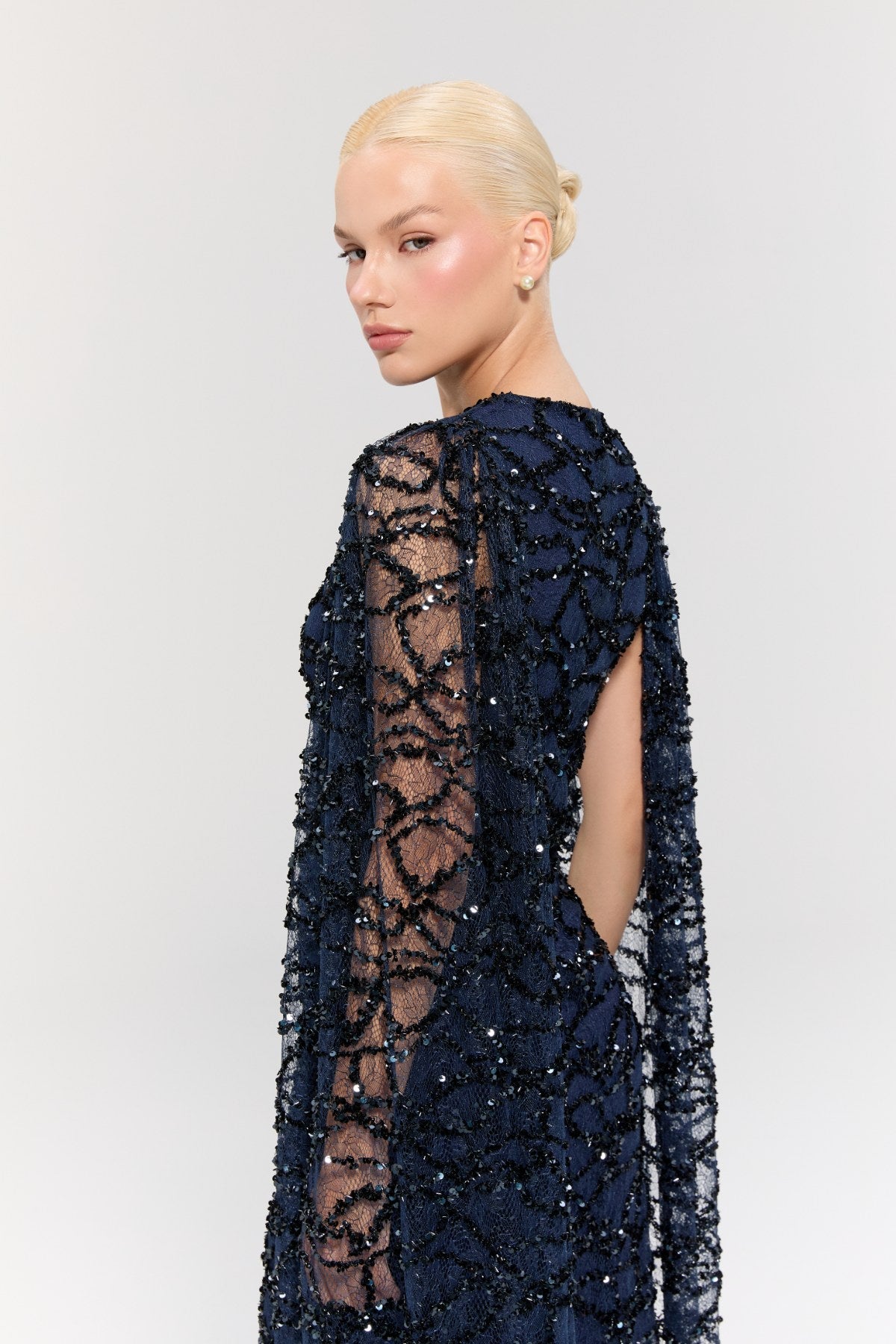 Its inner lining ensures comfort, while cape-shaped sleeves add movement and elegance.