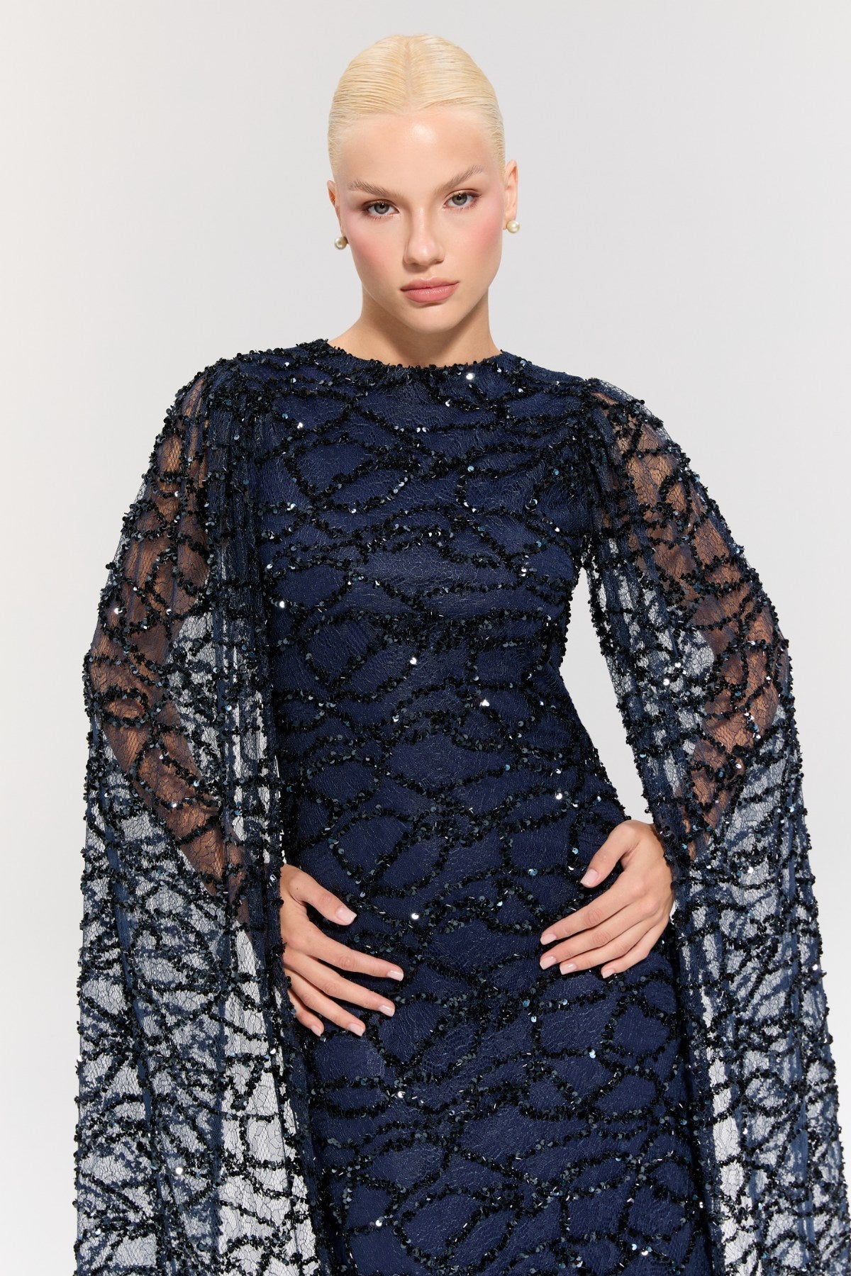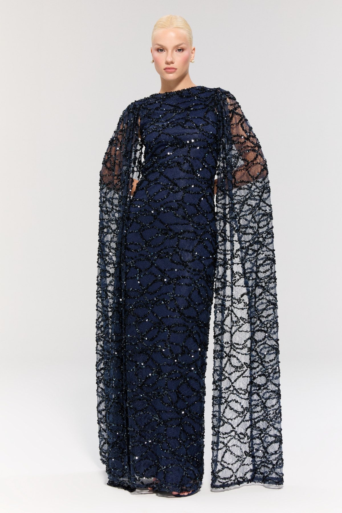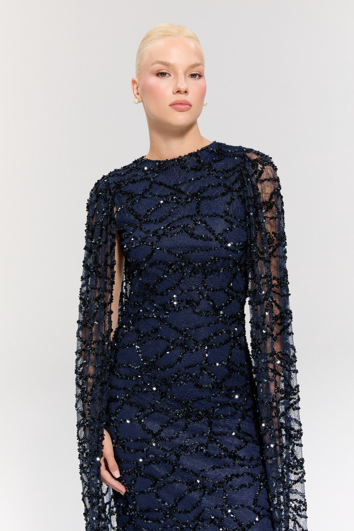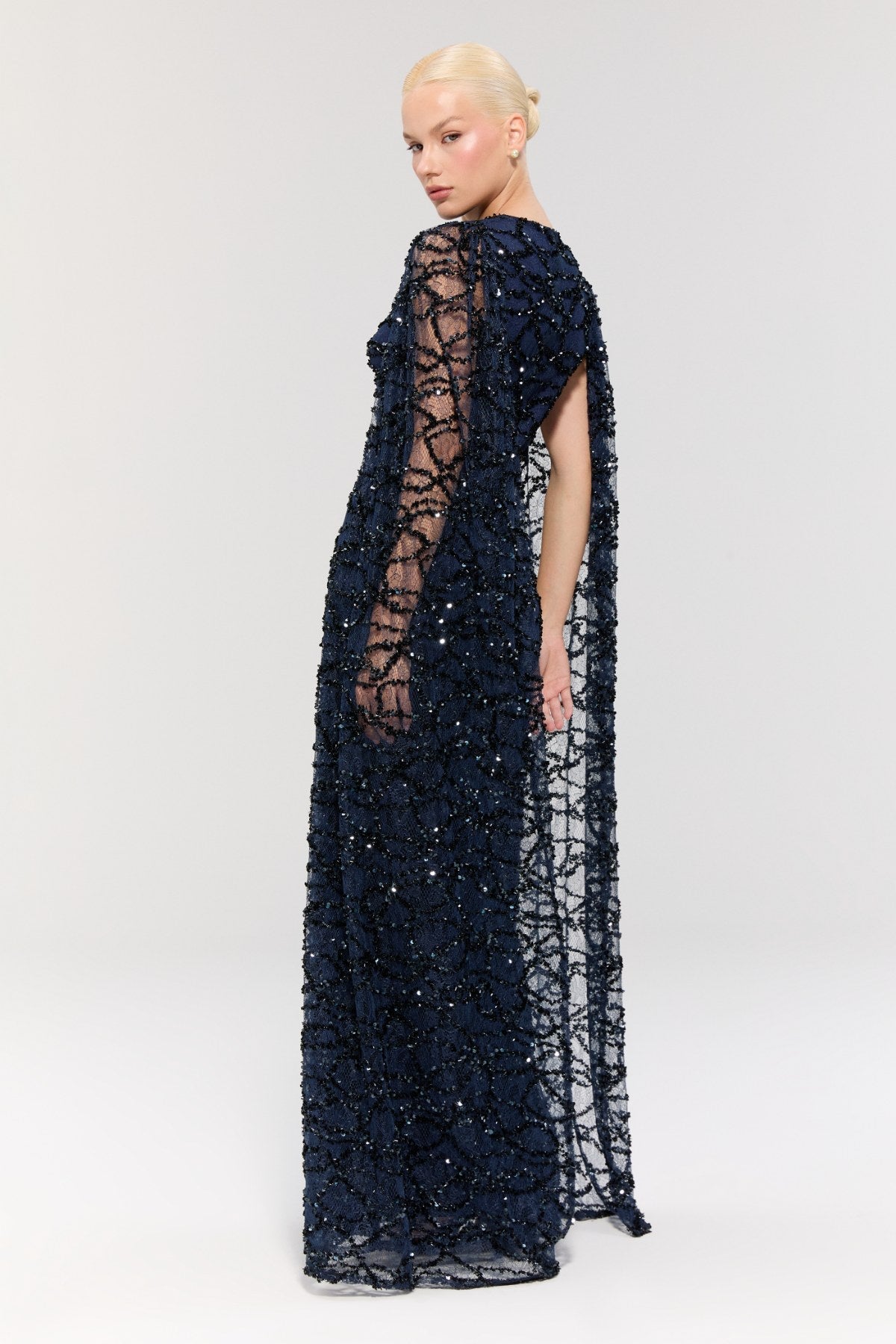 Its inner lining ensures comfort, while cape-shaped sleeves add movement and elegance.