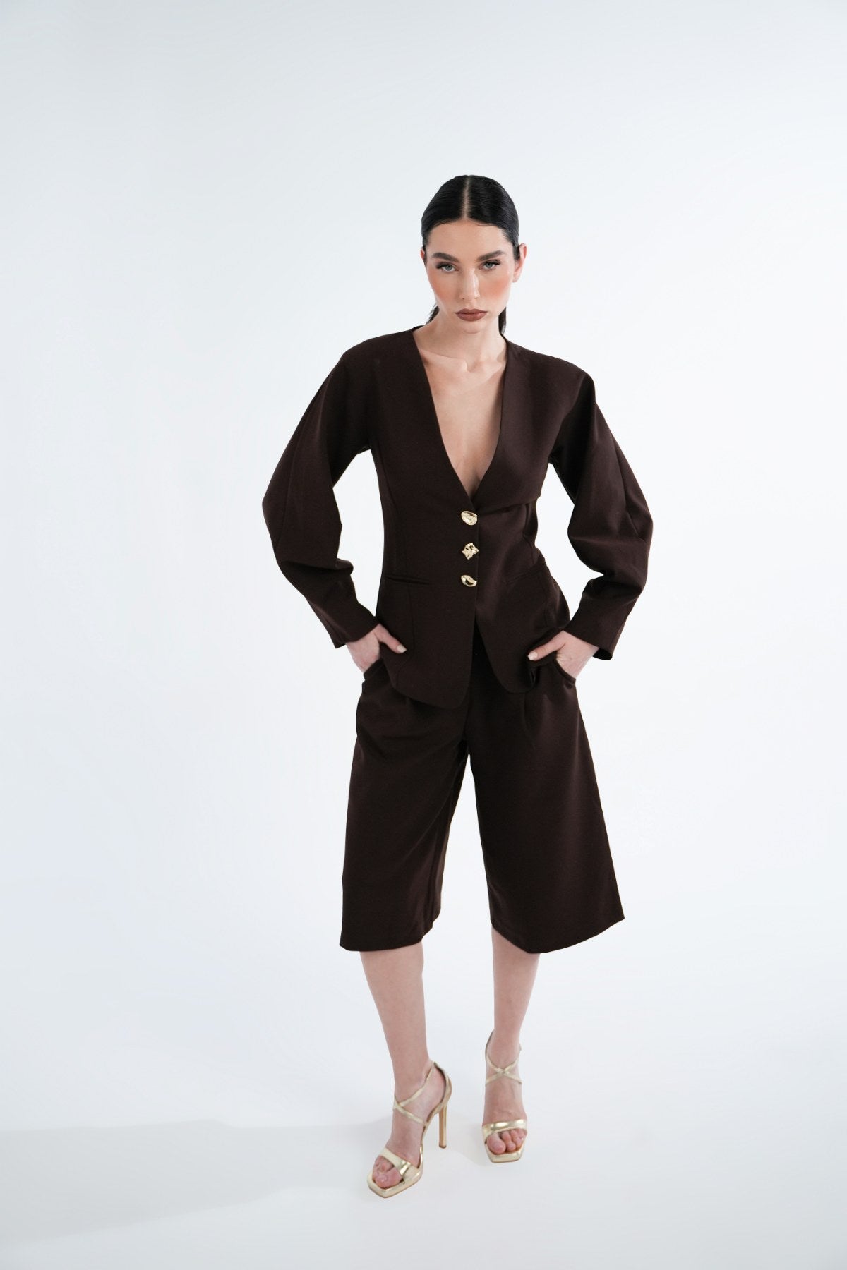 Brown jacket with gold buttons